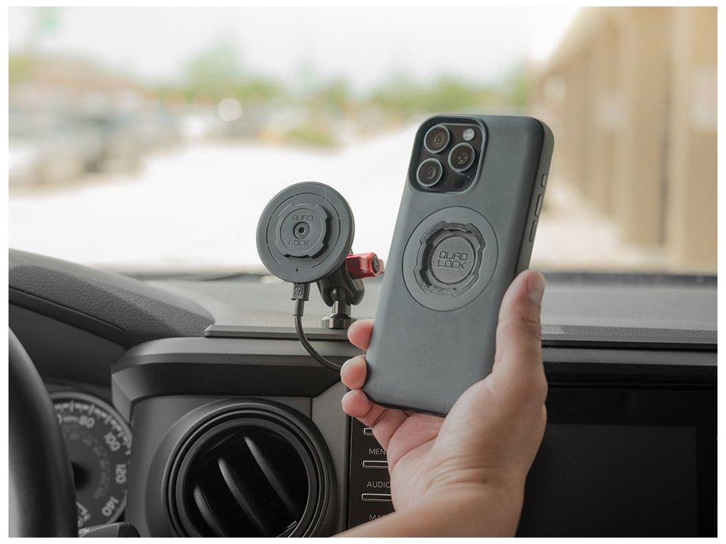 Nová řada Quad Lock® MAG spojuje výhody otočného mechanického zajištění pro využití například na motorce či na kole s jednoduchým magnetickým uchycením v případech kdy mechanické není potřeba, například v autě či doma. Pro uživatele telefonů iPhone jsou MAG pouzdra MagSafe compatible.