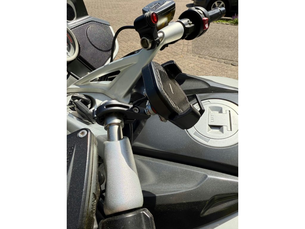 Držák na řídítka, který bezpečně upevní držák mobilního telefonu CG-2 na řídítka jakéhokoli motocyklu se standardní konfigurací řídítek.
