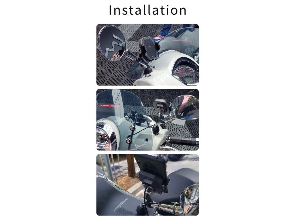 Jedná se o dokonalé a nejčistší řešení pro montáž na skútry, které mají kapotáž na řídítkách. Ideální pro skútry Vespa a jiné podobné stroje či montáž na zrcátka jakékoli jiné motorky s průměrem trubky zrcátka 10-12mm.