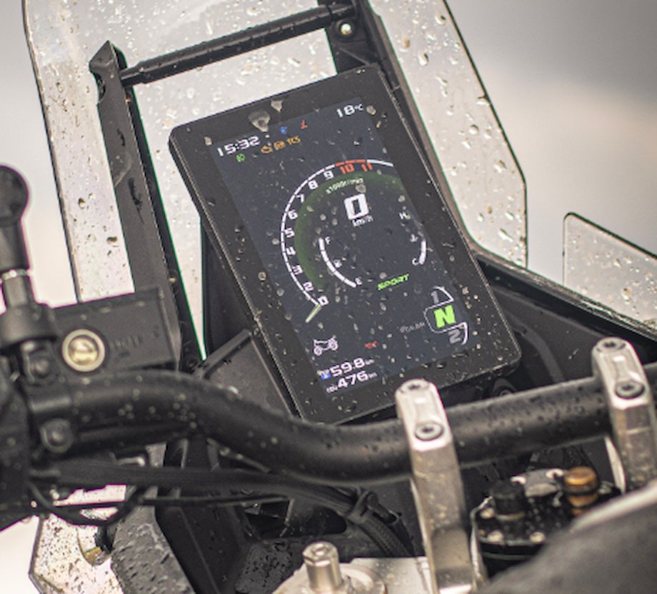 Displej na stojáka, abys na něj viděl i ze stupaček Na barevnej TFT displej s vysokým jasem a kontrastem krásně uvidíš i za toho nejvostřejšího slunka. A že je postavenej na vejšku? To není náhoda – když vyskočíš do stupaček, máš pořád perfektní přehled. Displej můžeš ovládat přes chytrý udělátka na řídítkách a přes blůtůčko si ho spáruješ s mobilem. |