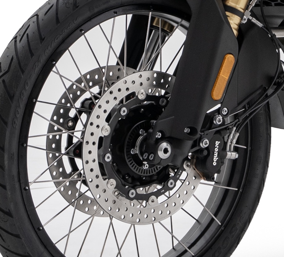 | Přední pneu | 90/90-R21 – bezdušové Pirelli Scorpion Trail II |