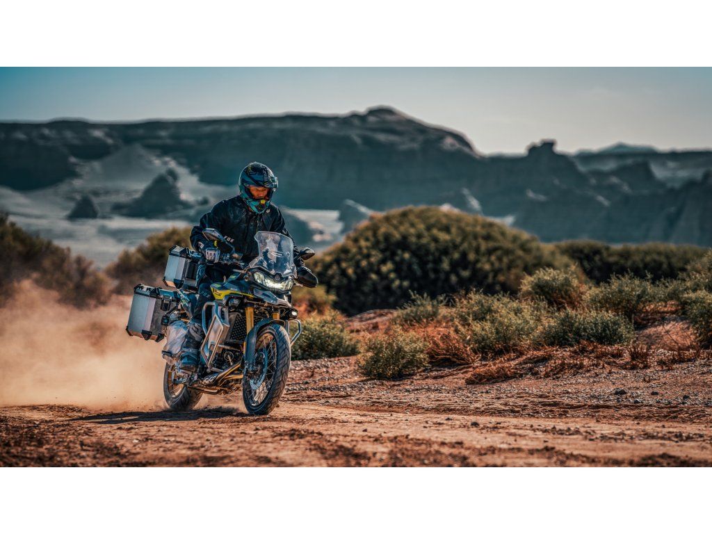Brzdy? Od Bremba. Podvozek je zase komplet od Kayaby a stabilitě napomáhaj vypletený bezdušáky (21"/17") obutý do špičkovejch gum Pirelli Scorpion Trail II. O bezpečnost se stará radar a styl jízdy si kdykoliv sám upravíš volbou jízdního režimu. Je jen na tobě, na kterej máš zrovna chuť.