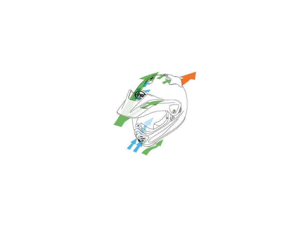 - excelentní ventilace s 3 horními vstupy a bradový vstup s vnitřní nastavitelnou směrovou clonou