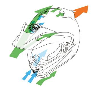 - excelentní ventilace s 3 horními vstupy a bradový vstup s vnitřní nastavitelnou směrovou clonou