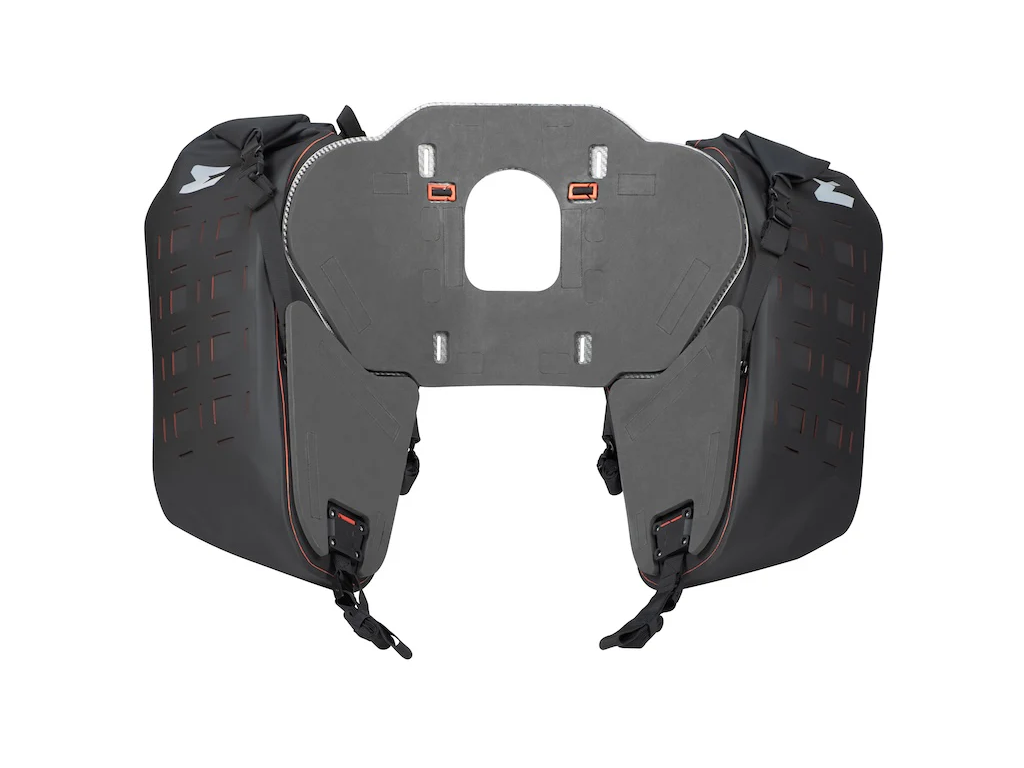 Srdcem systému je nosný středový díl, který se nachází na zadní části motocyklu mezi dvěma brašnami. Tento pevný nosný prvek rovnoměrně rozkládá zátěž po celém motocyklu, stabilizuje celý systém a umožňuje nastavení úhlu Hailstorm 50, což zajišťuje kompatibilitu s širokým rozsahem velkých zdvihů.