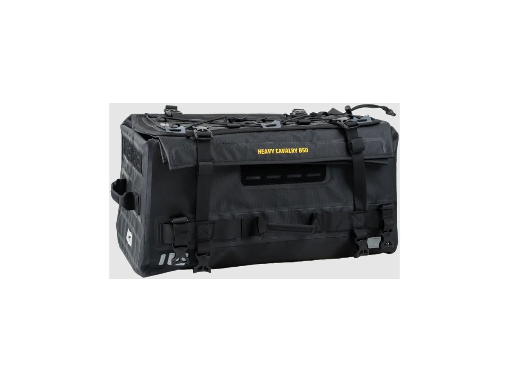 Heavy Cavalry B50 je odolná a funkčně navržená cestovní taška s objemem 50 l, určená pro adventure jezdce, kteří vyrážejí na dlouhé výpravy a potřebují spolehlivý úložný prostor pro veškeré vybavení. Její konstrukce je zaměřena na odolnost proti povětrnosti, opotřebení a náročné používání v terénu i na silnici.