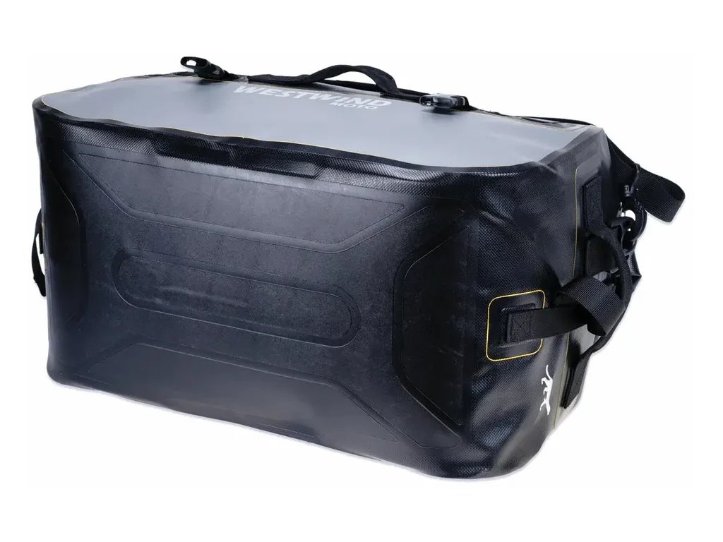 Taška má pevnou konstrukci s vnitřní PP výztuhou, díky které si drží tvar i při částečném naplnění a nehroutí se během jízdy. Odolný materiál je navržen tak, aby zvládal vysokou zátěž, vibrace i náročné podmínky dálkového cestování.