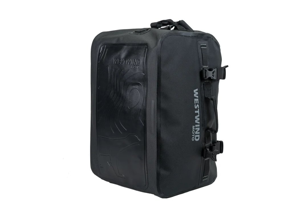 Taška má pevnou konstrukci s vnitřní PP výztuhou, díky které si drží tvar i při částečném naplnění a nehroutí se během jízdy. Odolný materiál je navržen tak, aby zvládal vysokou zátěž, vibrace i náročné podmínky dálkového cestování.