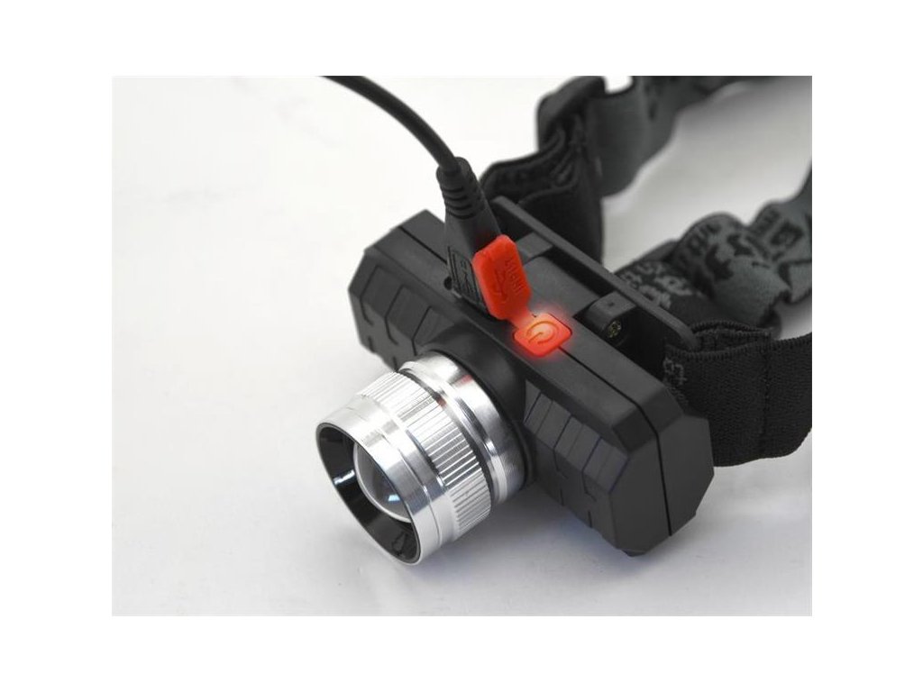 Nabíjecí čelovka s drobnými rozměry a výkonou 3W LED. Zdrojem světla je vysoce svítivá Cree XP-E LED se svítivostí 90lm, která je opatřená reflektorem pro zvýšení optického výkonu. Čelovka nabízí funkci normálního, nebo slabého osvětlení a blikání. Režimy lze pohodlně přepínat stiskem tlačítka na spodní straně těla. Napájení je řešeno vestavěnou Li-Ion 18650 baterií. Nabíjení je potom řešeno pomocí přiloženého microUSB kabelu. Součástí tlačítka pro zapnutí je LED signalizace nabíjení, pokud je nabíjení ukončeno, červené světlo zhasne. Tělo čelovky oplývá drobnými rozměry a nízkou hmotností. Čelovka je navíc opatřena funkcí ZOOM, kdy lze oddálit, nebo naopak přiblížit optiku, pro nastavení vhodného usměrnění vyzařovaného světla. Popruh je délkově nastavitelný, čelovku je tak možné použít na jakkoliv velkou hlavu.