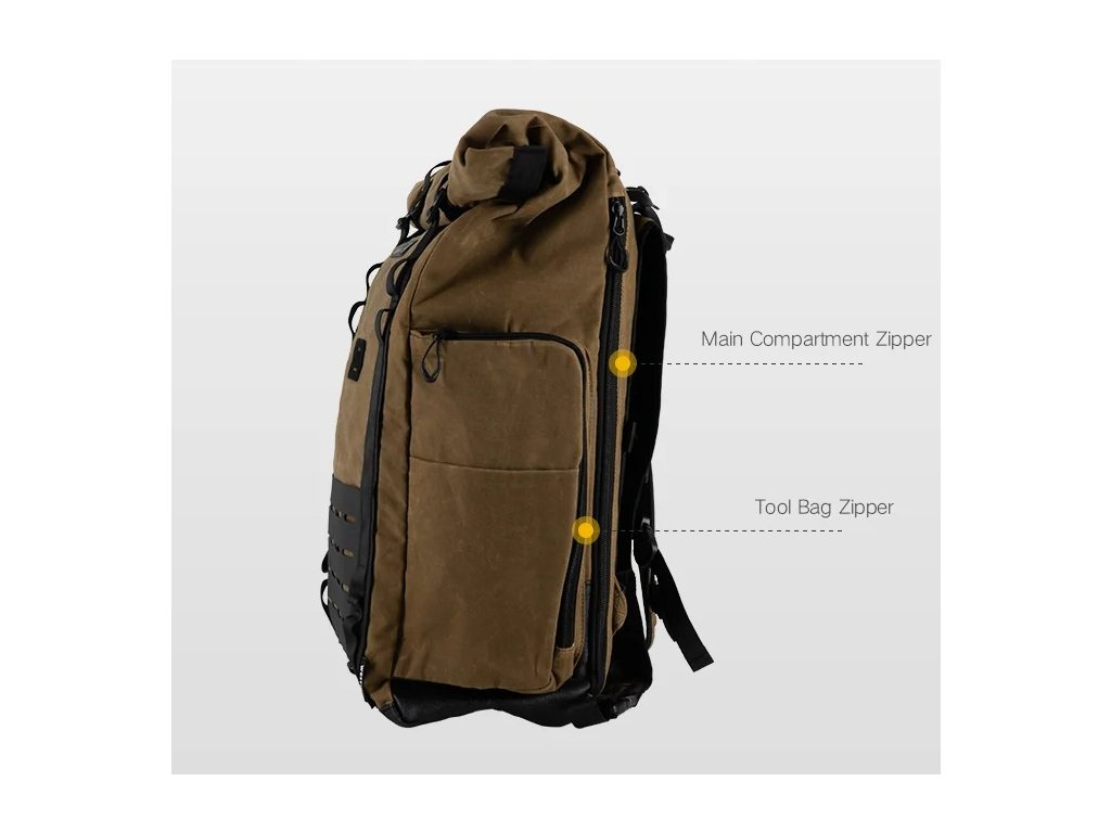 Flexibilní kapacita : Díky rolovacímu designu se batoh přizpůsobí vaší zátěži a zároveň zvýší jeho odolnost proti vodě.