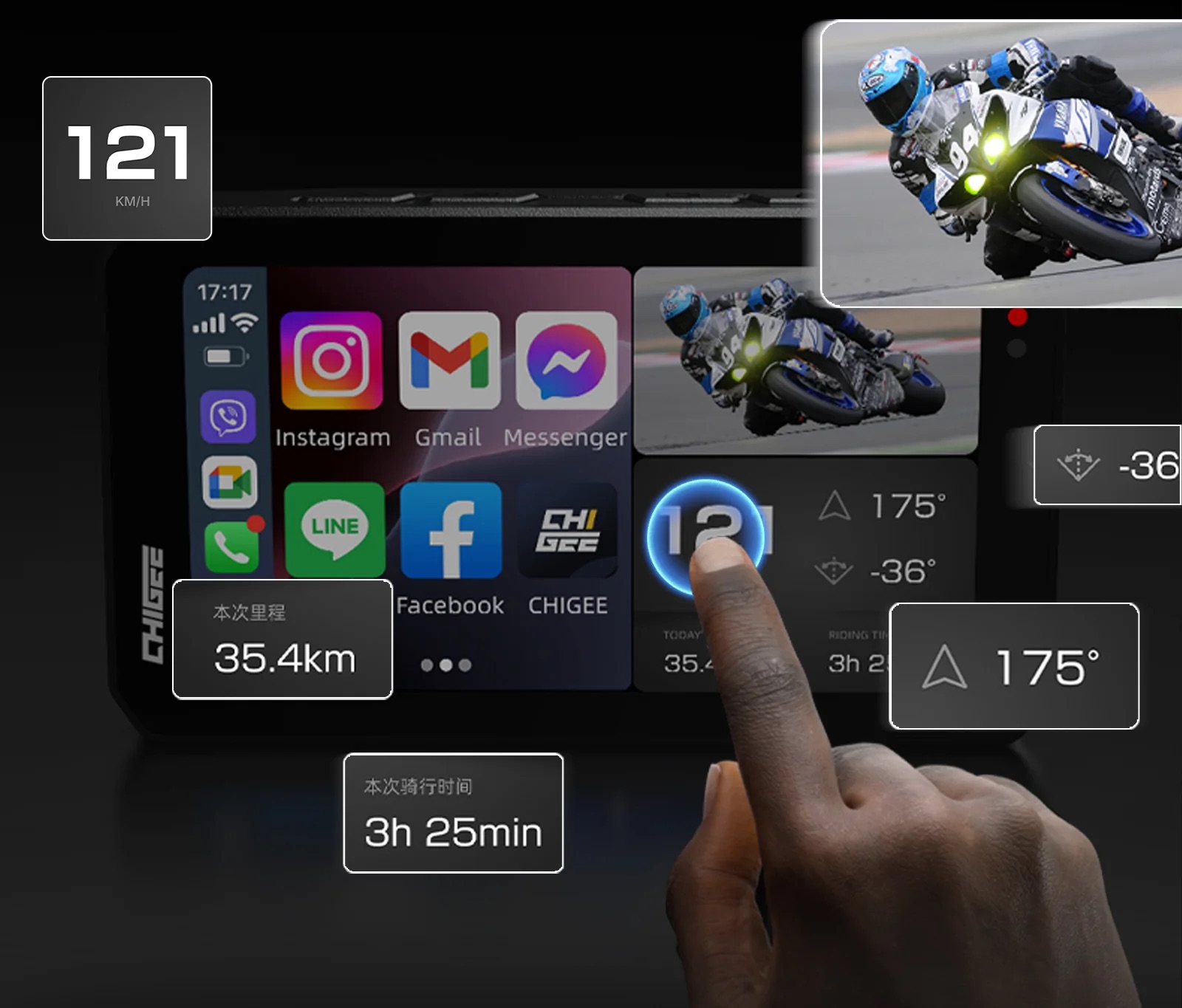Čtení dat - Pomocí exkluzivního modulu CHIGEE můžete číst data svého motocyklu a zobrazovat je přímo na displeji CHIGEE pro okamžitý přehled. Dostupnost dat, které dokáže OBD modul číst se liší dle značky a modelu motocyklu. Kompatibilitu můžete nalézt ZDE.