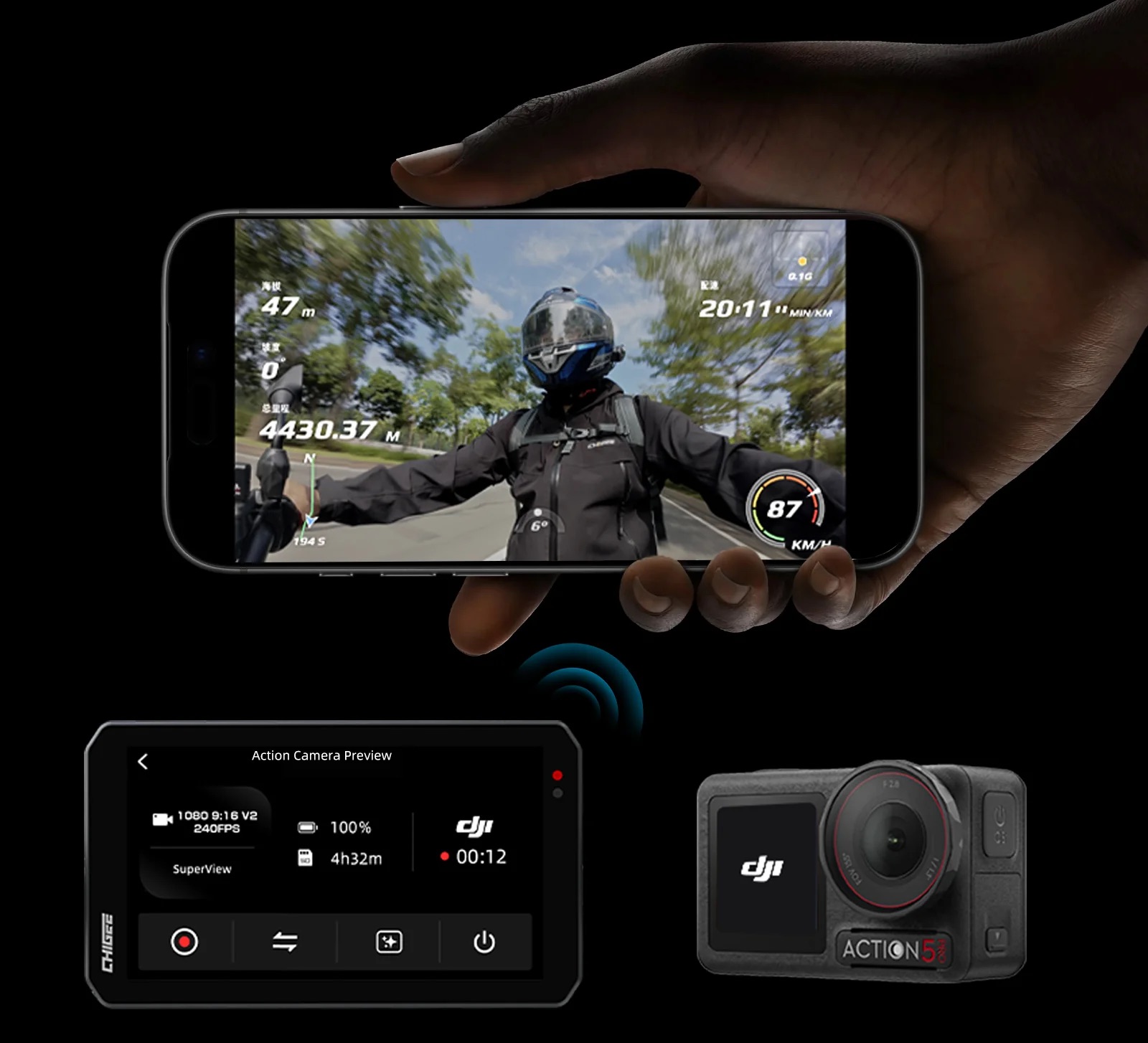 Připojte kompatibilní akční kamery a ovládejte je z displeje – spusťte/zastavte nahrávání, pořiďte snímky, probudte kameru a vytvořte nejzajímavější momenty jediným klepnutím. Zobrazte synchronizovaný stav a délku nahrávání a překryjte záznam GPS datami o jízdě, abyste získali čistý a přesný záznam trasy.