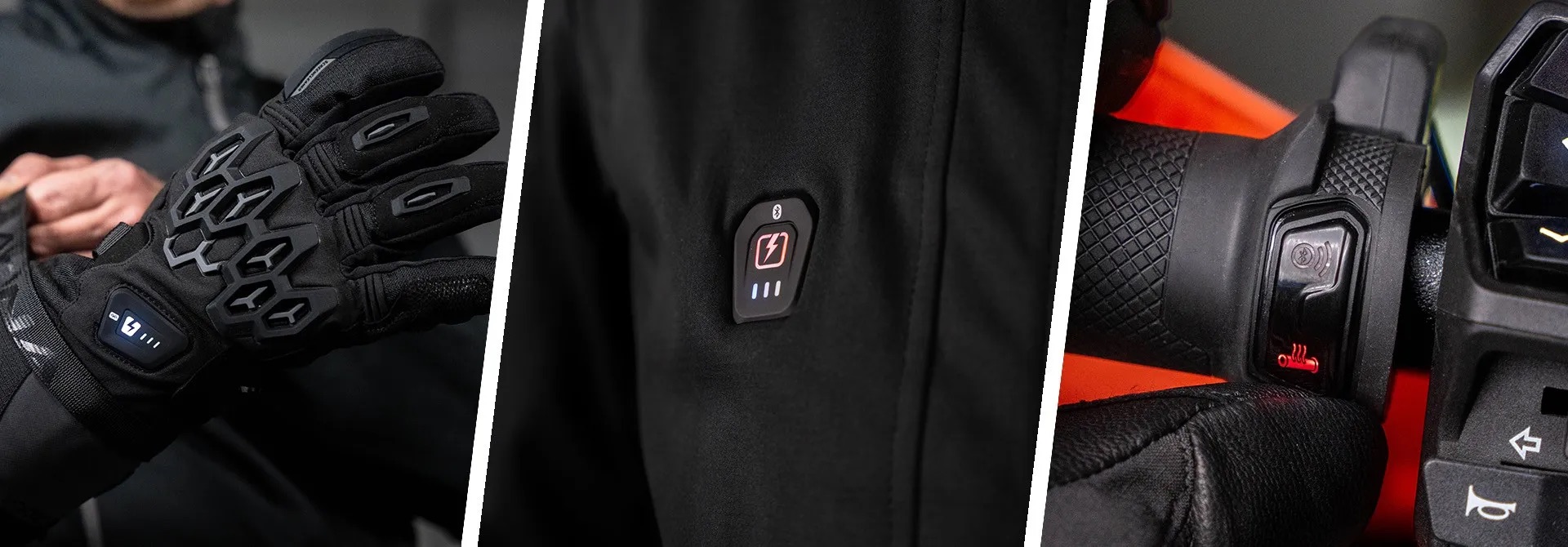 To znamená žádné zbytečné dráty, žádné hledání samostatných baterií pro každou část. A když sesedneš z motorky, jen odpojíš konektor a můžeš pokračovat pěšky – teplo zůstává.