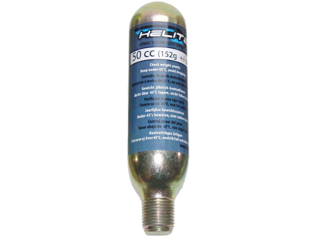 HELITE nabízí 3 rozdílné velikosti CO2 bombiček přizpůsobené k velikosti těla. CO2 plyn není nebezpečný (používá se pro hašení požárů) a je snadný k manipulaci. Proto, po aktivaci airbagu, může klient znovu aktivovat systém sám.