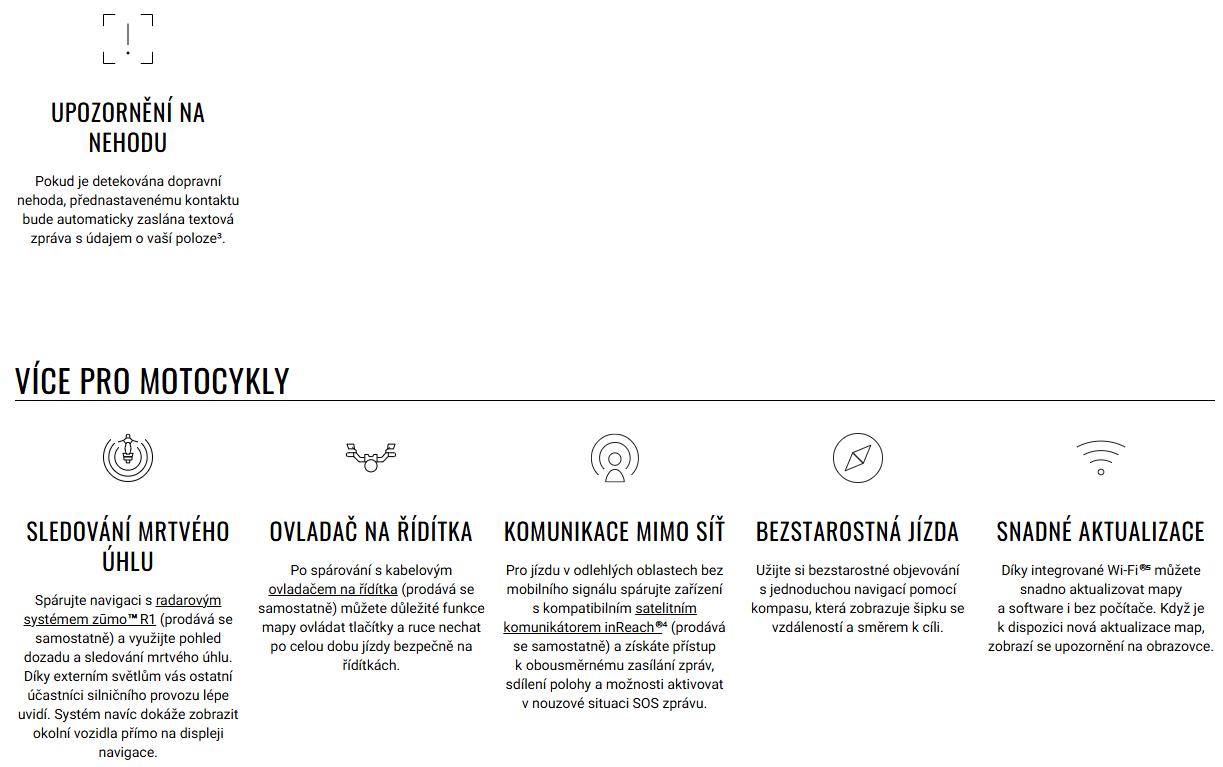 Jízda na motorce je zážitek, který nemá obdoby. S navigací zūmo XT3 si podmaníte každou zatáčku, šikanu a rovinku na silnici i na závodním okruhu. Díky vodotěsnosti stupně IPX7 a odolnosti podle normy MIL-STD-810 si toto robustní zařízení poradí s extrémním počasím a vibracemi řídítek. Nabízí spoustu funkcí, se kterými si užijete každou jízdu ještě víc.