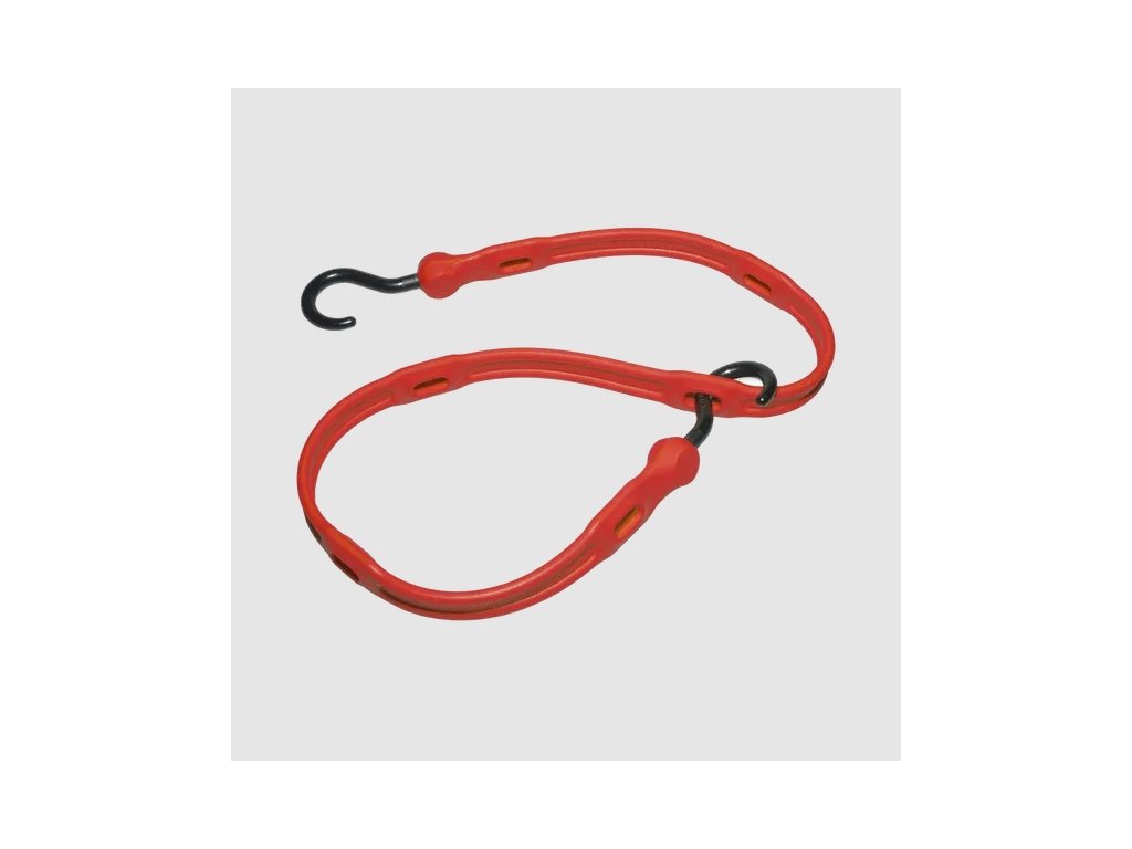 Popruh Dyna Strap je dlouhý 86 centimetrů a lze jej bezpečně natáhnout až na 1,72 metru, což je dvojnásobek jeho délky. Na obou koncích je vybaven nylonovým háčkem, který nepoškrábe lak ani nepoškozuje povrch.