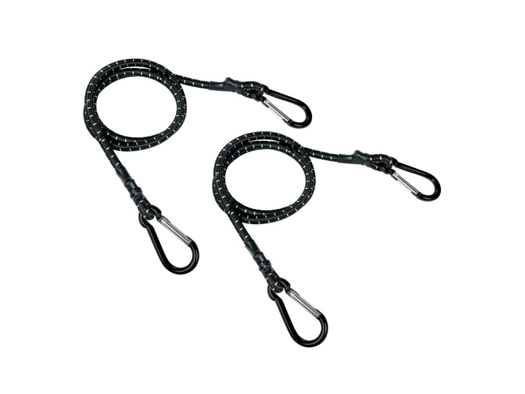 - Karabina, pár elastických lan s hliníkovými karabinami.