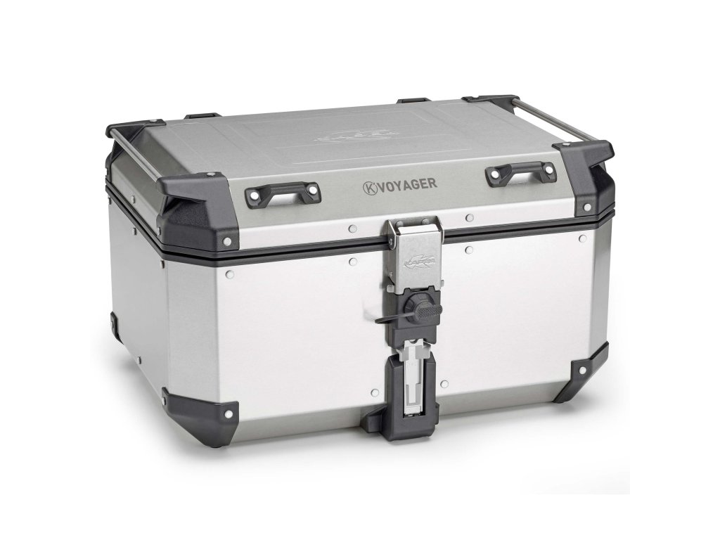 Vrchní kufr K'VOYAGER z přírodního 1,5 mm hliníku, 58 l. Systém kování MONOKEY®. Kompatibilní se všemi plotnami MONOKEY®.