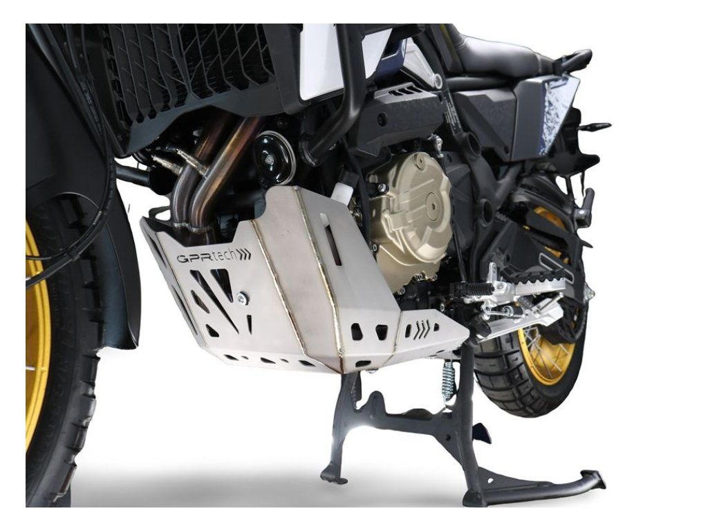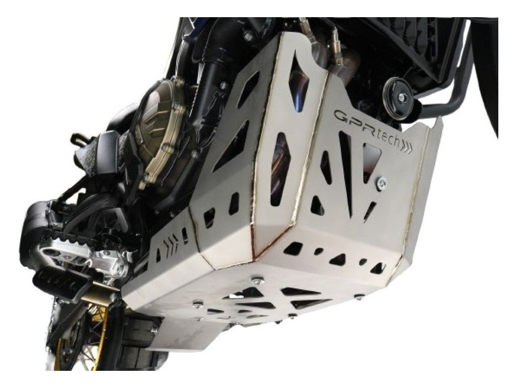 Ochranná deska vyrobená z vysoce kvalitního titanu třídy 2 o tloušťce 3 mm chrání motor, rám a vodní čerpadlo. Díky titanové konstrukci ušetříte 50 % hmotnosti oproti výrobkům z hliníku, nevytváří vibrace, pohlcuje část síly nárazů a představuje nejlepší řešení, jak ochránit váš motocykl před kameny.