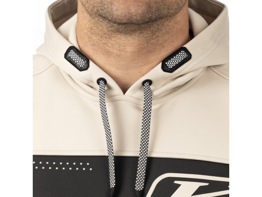 - Mikina s kapucí a nastavitelnou stahovací šňůrkou pro přizpůsobení velikosti a maximální krytí.