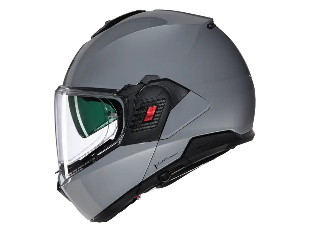 Nolan N120-1 je preklopná modulární přilba, která díky flip-back technologii umožňuje otočení bradové části až o 180°, čímž nabízí maximální flexibilitu při jízdě. Disponuje dvojí homologací (P/J), což znamená, že ji lze používat jako integrální i otevřenou helmu. Inovativní systém otevírání Dual Action s dvojitými pákami zajišťuje snadné a plynulé ovládání.