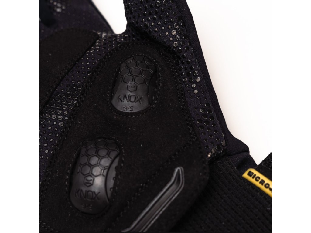 - Nízký profil Knox Scaphoid Protection System (SPS) na dlani, který eliminuje efekt sevření, k němuž dochází při kontaktu kožené dlaně s vozovkou, a snižuje tak riziko hyperextenze, která může být příčinou zlomeniny lopatky.