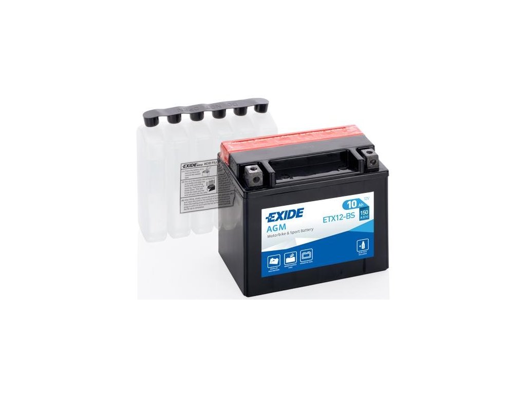 motocyklová baterie EXIDE AGM DRY YTX12-BS - 12 V, 10 Ah