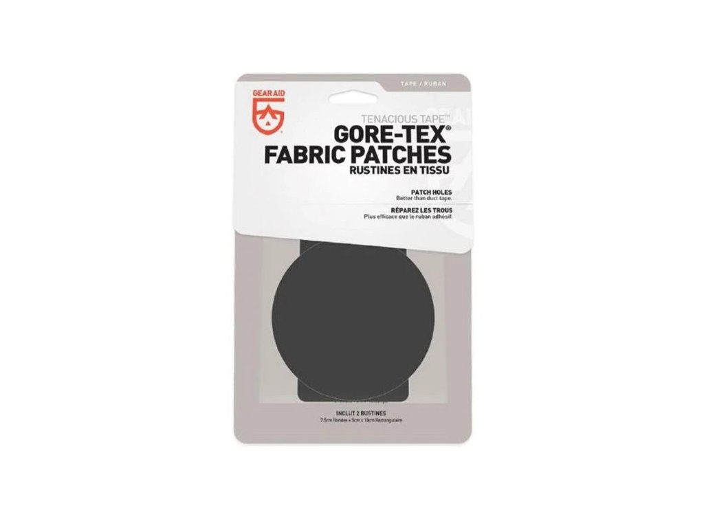 Když se vaše oblečení GORE-TEX® roztrhne, zalepte ho pomocí látkových záplat Tenacious Tape GORE-TEX. Tato sada obsahuje dvě látkové záplaty s lepicí podložkou. Samolepicí záplaty lze nastříhat na velikost a tvar, který potřebujete pro vytvoření díry nebo trhliny na jakémkoli oblečení. Pevná záplata se přilepí k látce a neodlepí se ani po vyprání. Pro lepší přilnavost žehlite na nízkou teplotu nebo sušte v sušičce na nízkou teplotu. Pro rychlou opravu vašeho oblečení GORE-TEX doma nebo v terénu použijte látkové záplaty Tenacious Tape GORE-TEX.