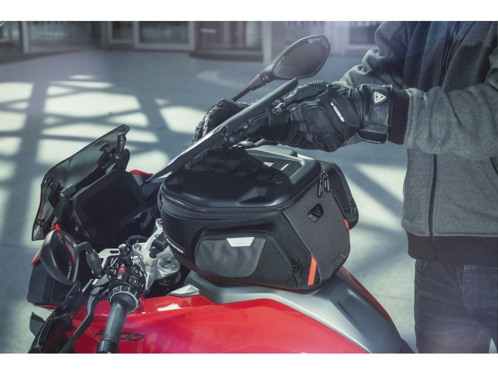 Vodotěsný Tablet-Drybag je správným přepravním řešením pro mapy a tablety na vacích pro nádrže PRO: se dvěma retenčními rameny je Tablet-Drybag vložen do systému MOLLE a dodatečně zajištěn elastickým páskem na sáčku. Polohu tablet-drybagu na nástavci MOLLE můžete upravit tak, aby vyhovovala vašim potřebám. Podrobné informace o tom, jak připojit Tablet -Drybag k nástavci MOLLE, naleznete v návodu k obsluze. Samotná tableta je vodotěsná v plastovém pouzdře s velkým čirým PVC oknem. S Tablet-Drybag lze na motocykl namontovat téměř všechna zařízení standardní velikosti pro bezpečnou navigaci. Alternativně lze Tablet-Drybag použít také pro konvenční silniční mapy.