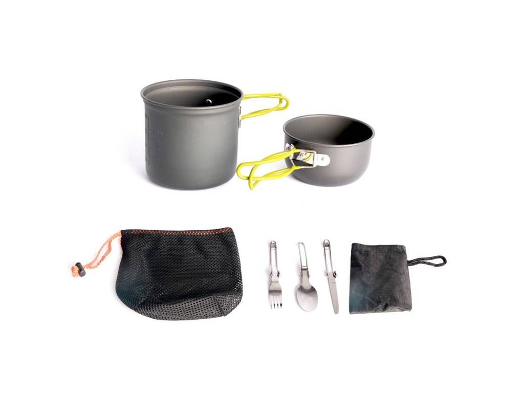 Sada ešusů Carface na vaření se skládací rukojetí. Set obsahuje skládací příbor a síťovaný transportní obal.