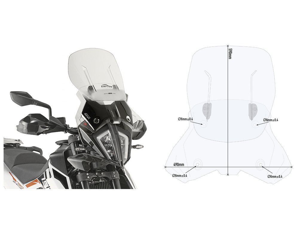 plexi čiré GIVI AF7711 KTM Adventure 390 (-24)/790/790R (-20), vxš515-635x350 mm