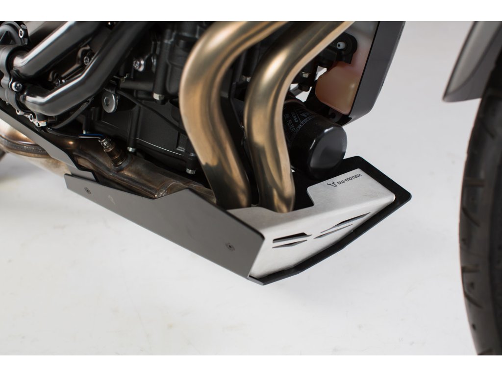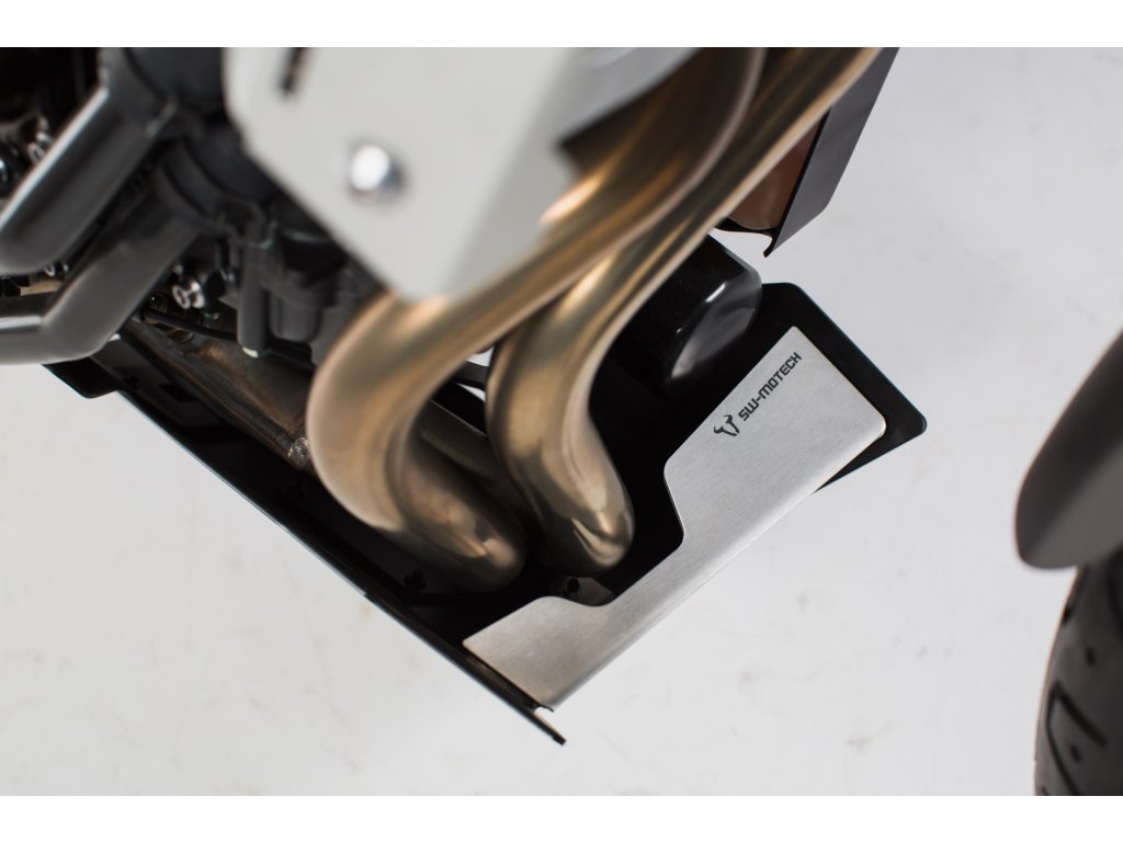 Přední spoiler SW-MOTECH, který je přizpůsoben designu kola, nabízí spolehlivou ochranu proti kamenným třískám a neúmyslný kontakt se zemí. Prášková lakování na povrchu je extrémně odolná a trvale chrání před korozí. Extrémně robustní ochranu podvozku lze snadno připevnit k původním upevňovacím bodům pomocí vlastních ocelových nástavců, a to vše bez vrtání nebo svařování.