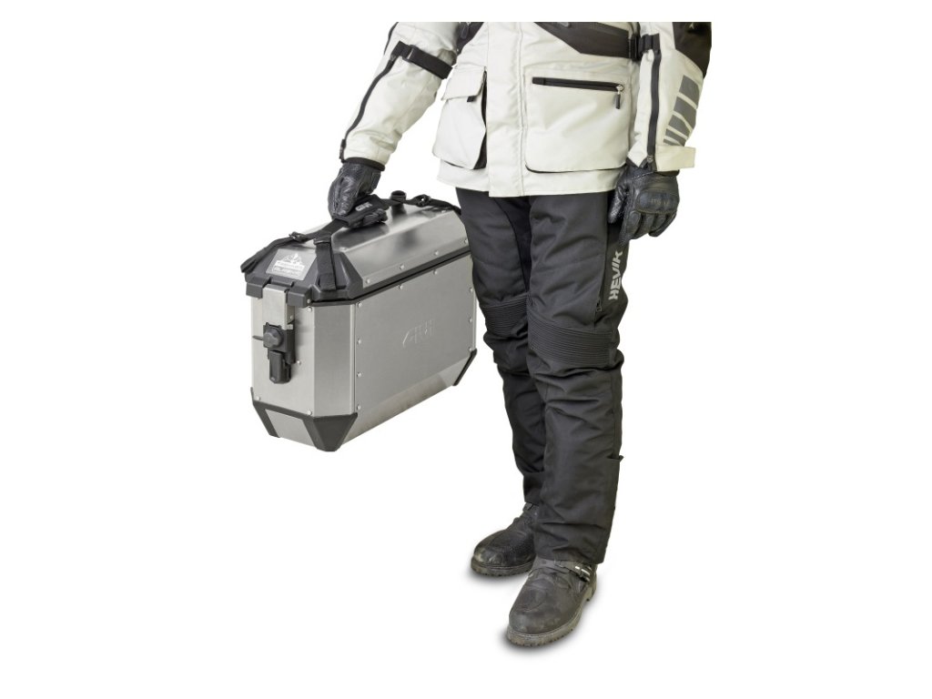 Sada černě lakovaného pravého a levého bočního celohliníkového kufru s nahoru otevíracím víkem se sjednocenými zámky, objem 2 x 36 litrů, rozměry šxvxh = 562x374x260 mm (z čelního pohledu), nosnost 10 kg. Lze doobjednat vnitřní tašku do kufu T 506, nebo tašku na víko kufru UT 807C, připadně popruh na přenášení E 188. Dále E 144 vnitřnísiťku do víka kufru, E 146 ochranné pruhy na víko kufru a E 162 nosič lahve STF 500S. Lze použít pouze jako boční kufr, pasuje na všechny boční nosiče s tříbodovým upínáním řady PL/PLR/PLO/PLOR = nelze uchytit na nosiče PLX (ty jsou pouze pro kufry V 35 a V 37) ani na nosiče PLxxxCAM (ty jsou pouze pro kufry OBKN Trekker Outback). K dispozici od dubna 2020. POZOR - při montáži na nosič PL/PLR je nutno podložit spodní úchytný čep dodávanou distanční podložkou (je součástí balení kufrů - viz originální návod výrobce, strana 7, obrázek 2, pozice A!!!).