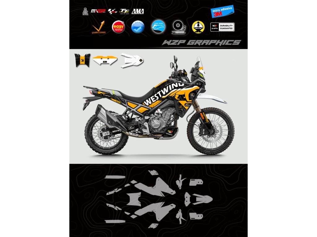 Polepy Westwind dostupné pro modely CF450MT, Kove450rally, KOVE 800X, KTM790ADV, KTM ADV, BMW R1300GS, BMW GS atd.