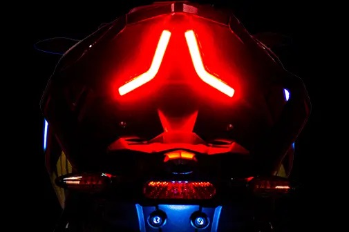 Sexy světla na nádrži Neskutečně rajcovní LED pásky zdobí obě strany palivový nádrže. |