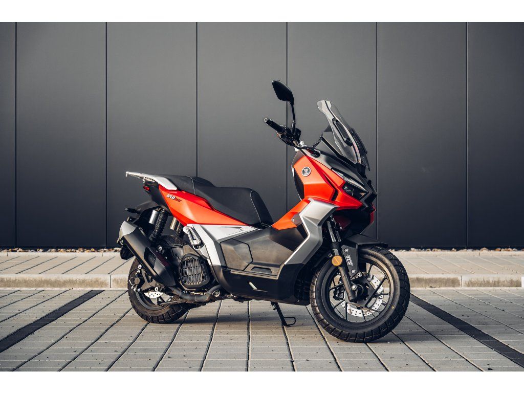 Skútr s adventure duší Agresivní adventure design s vyšší světlou výškou, který plně vystihuje ducha dobrodružství. |
