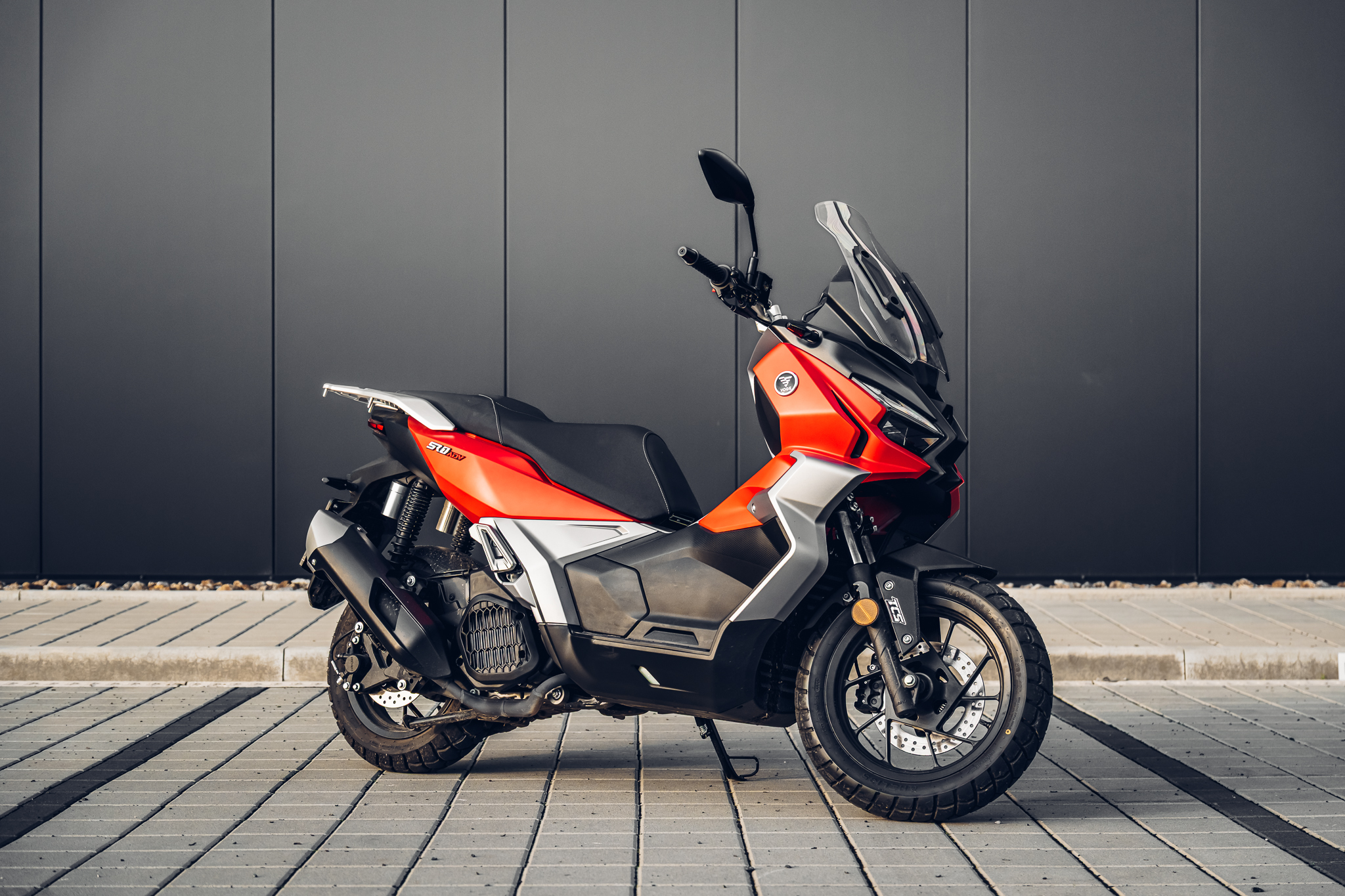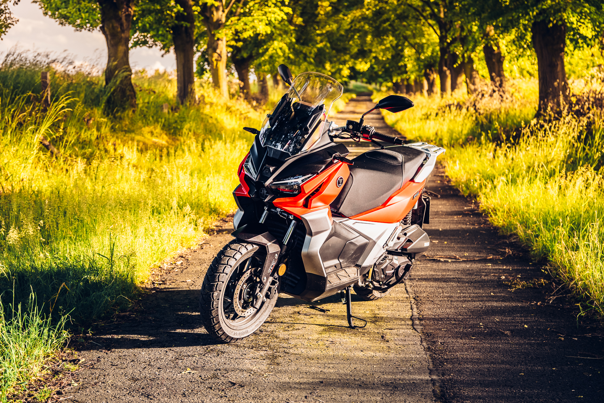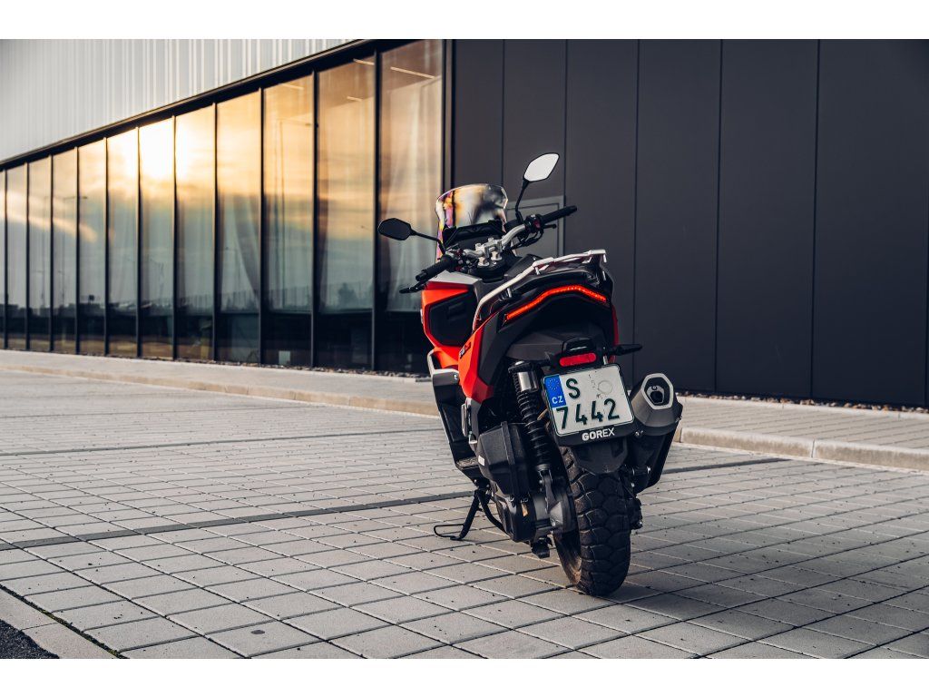 Skútr s adventure duší Agresivní adventure design s vyšší světlou výškou, který plně vystihuje ducha dobrodružství. |