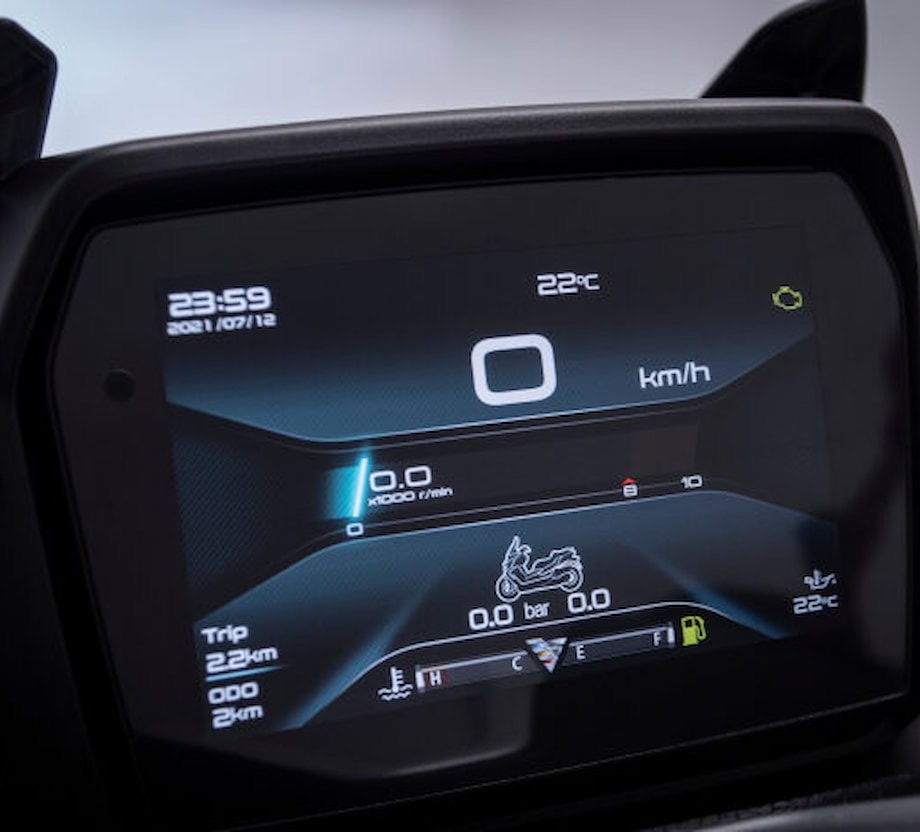 Obrazovka jako v kině Barevnej 7palcovej TFT displej s konektivitou ti naservíruje veškerý potřebný info. A když veškerý, tak veškerý. Na očích budeš mít nejen klasiku typu spotřeba nebo hodiny, ale taky třeba tlak v pneu a echo o příchozích hovorech. |