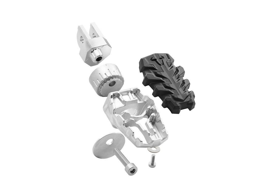 Není možné původní opěrku nohou pohodlně umístit? Pak je sada EVO stupaček od SW-MOTECH ideálním řešením pro vás. Tento sofistikovaný systém, který se skládá z rotujících prvků s pevně propojenými zuby, vám nabízí 36 možností polohování. Polohu opěrky nohou lze nastavit tak, aby byla nižší nebo posunutá dopředu nebo dozadu, a také upravit úhel tak, aby vyhovovala vašim individuálním potřebám. Kloubové adaptéry specifické pro kolo se jednoduše namontují na originální části držáku stupačky. Ukážeme vám, jak to funguje v montážních pokynech.