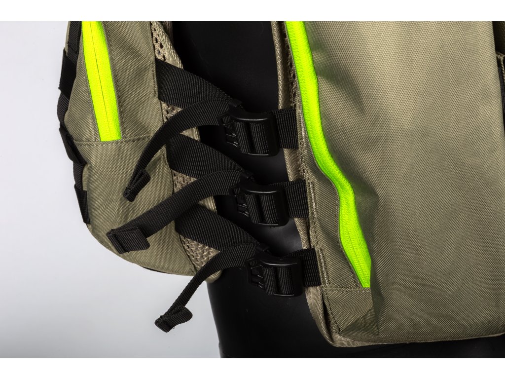 - Zadní hlavní vertikální kapsa na zip s vedením hydratačního systému.