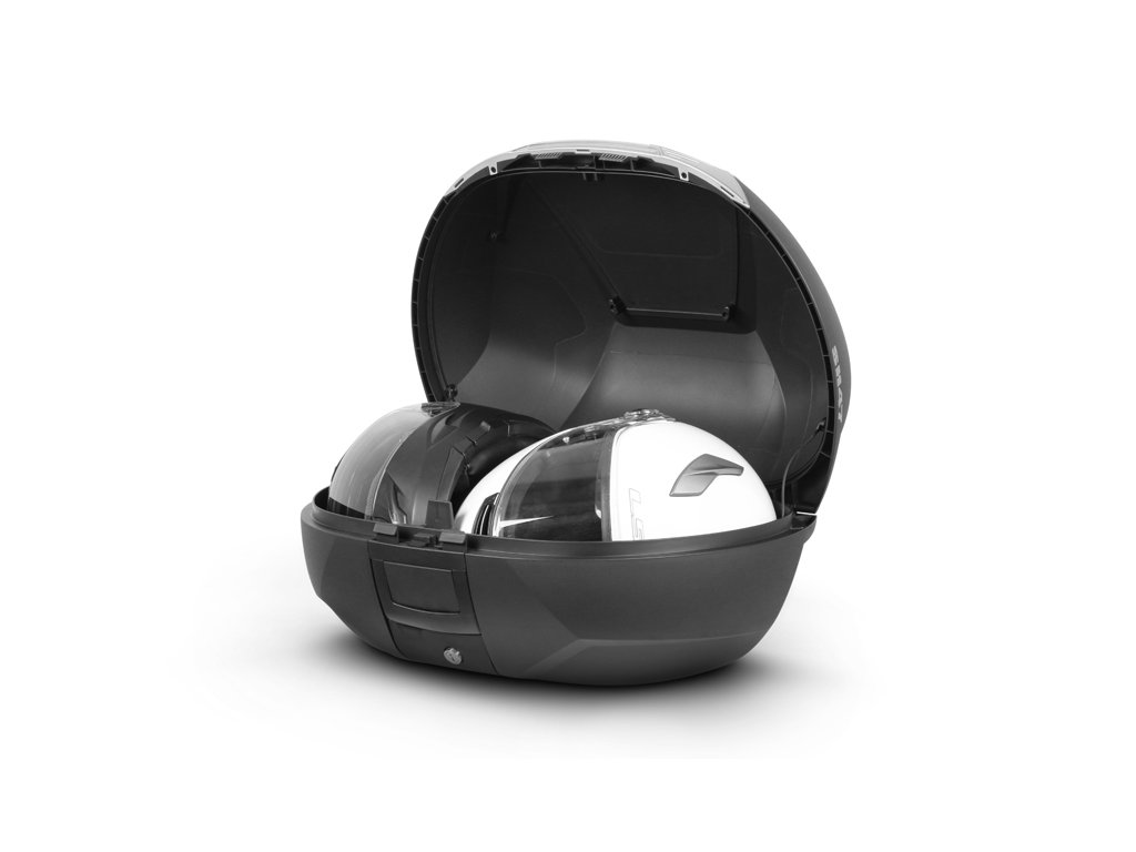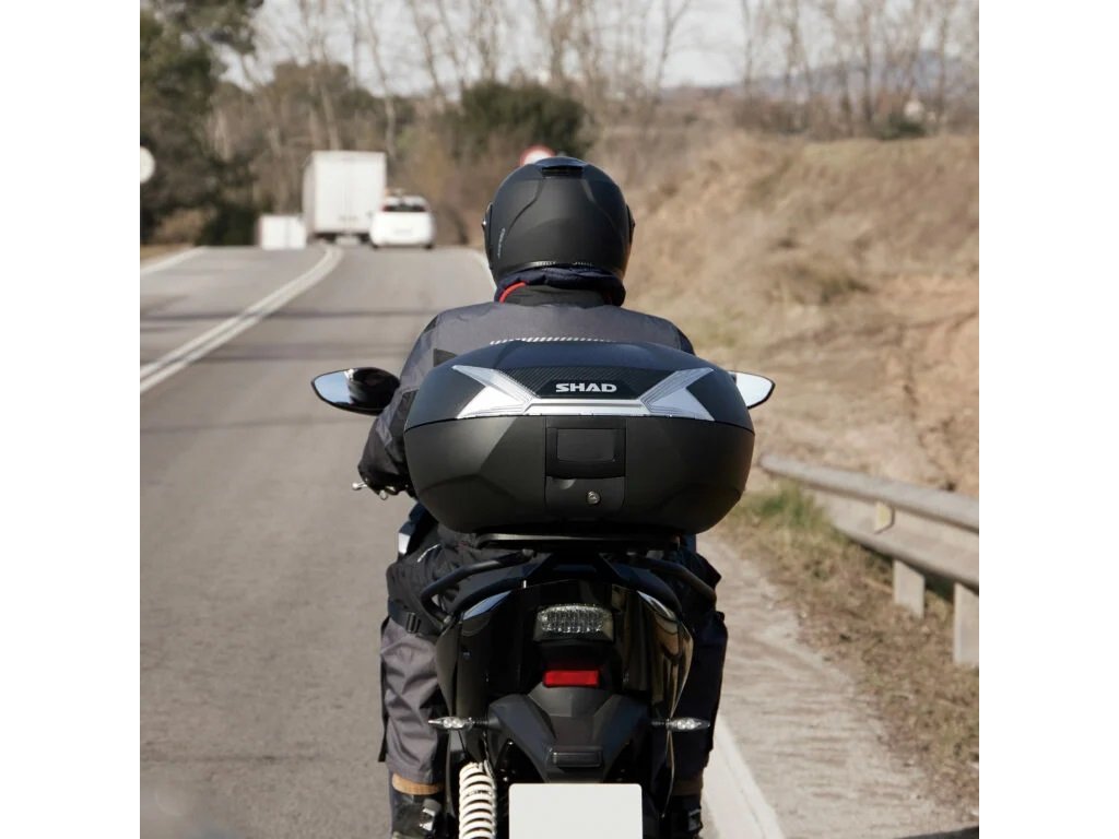 SH47 je špičkový kufr navržený v Barceloně a postavený na agresivním aerodynamickém tvaru. Má moderní a elegantní vzhled. Jeho velikost je ideální pro pohyb po městě nebo pro delší jízdy, což umožňuje jeho přizpůsobení jak na skútry, tak na střední a velké motocykly.