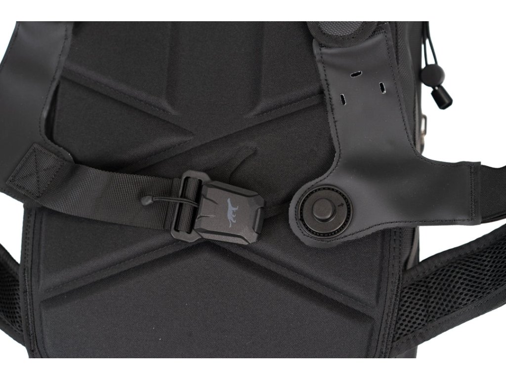 Batoh je vybaven unikátním systémem křížených ramenních popruhů s magnetickými rychloupínacími přezkami, které umožňují rychlé nasazení, snadné nastavení a velmi pohodlné nošení i při delších přesunech.