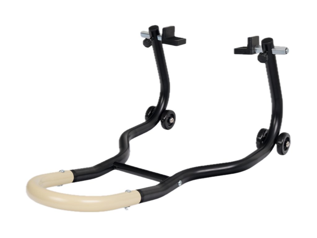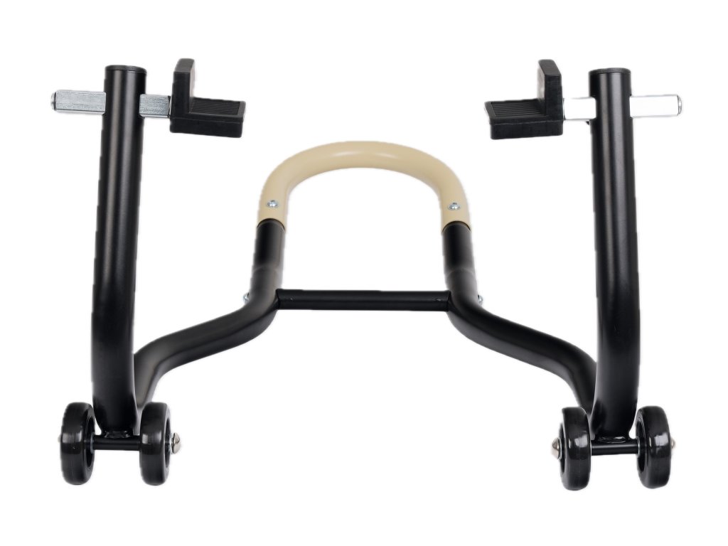Masivní konstrukce z ocelových trubek o průměru 38 mm zajišťuje vysokou pevnost a stabilitu i při práci s těžkými motocykly, včetně velkých adventure strojů. Stojan je navržen tak, aby bez problémů zvládal i vyšší zatížení a poskytoval jistotu při manipulaci s motorkou.