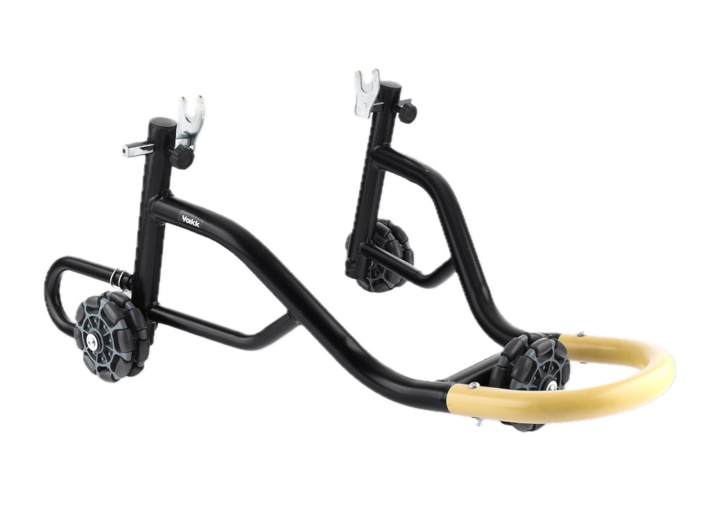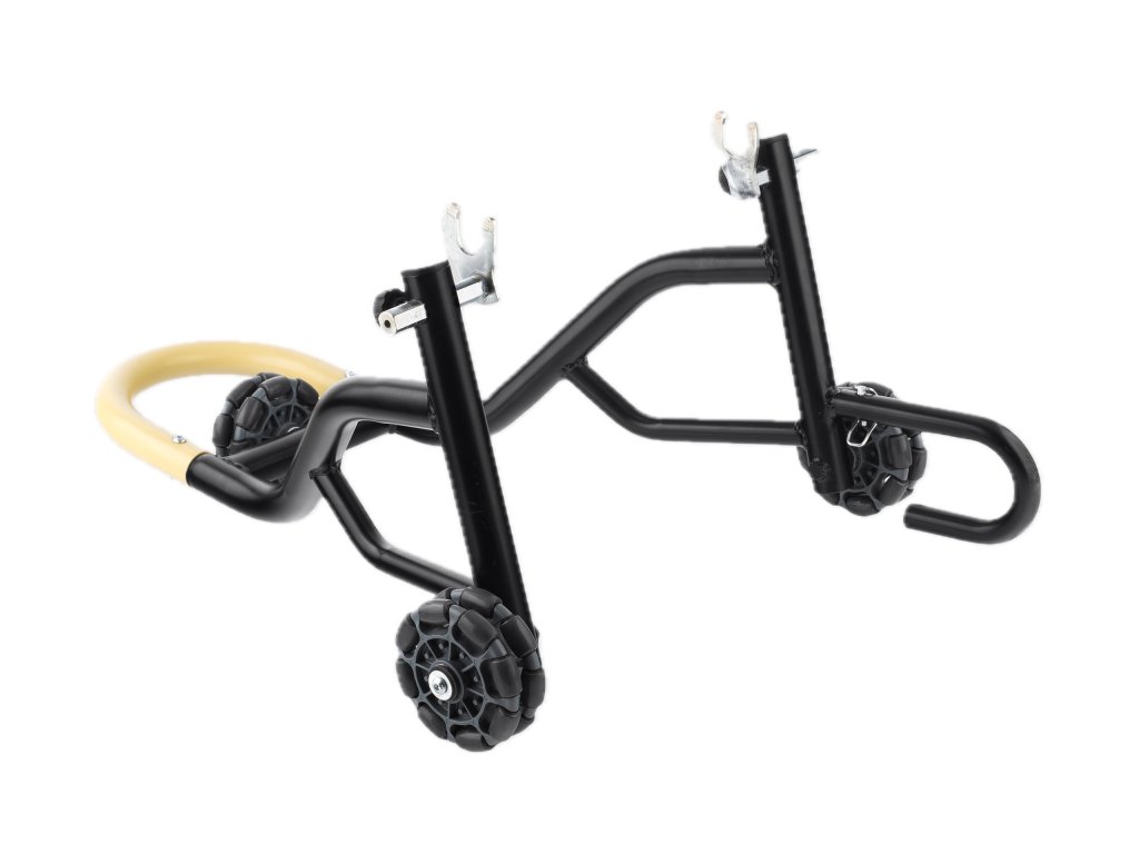 Zadní stojan s všesměrnými kolečky YAKK EXP LER L je profesionální řešení pro stabilní zvednutí a pohodlné přesouvání motocyklu, které se používá pod v kombinaci s rolnami (rolničkami). Díky vícenápravovému systému kol umožňuje snadné pohybování motorkou ve všech směrech při parkování, servisních úkonech nebo při manipulaci v garáži. Tento typ stojanu je ideální volba pro jezdce i mechaniky, kteří chtějí mít svůj stroj stabilně zvednutý a zároveň s ním snadno manipulovat bez námahy.